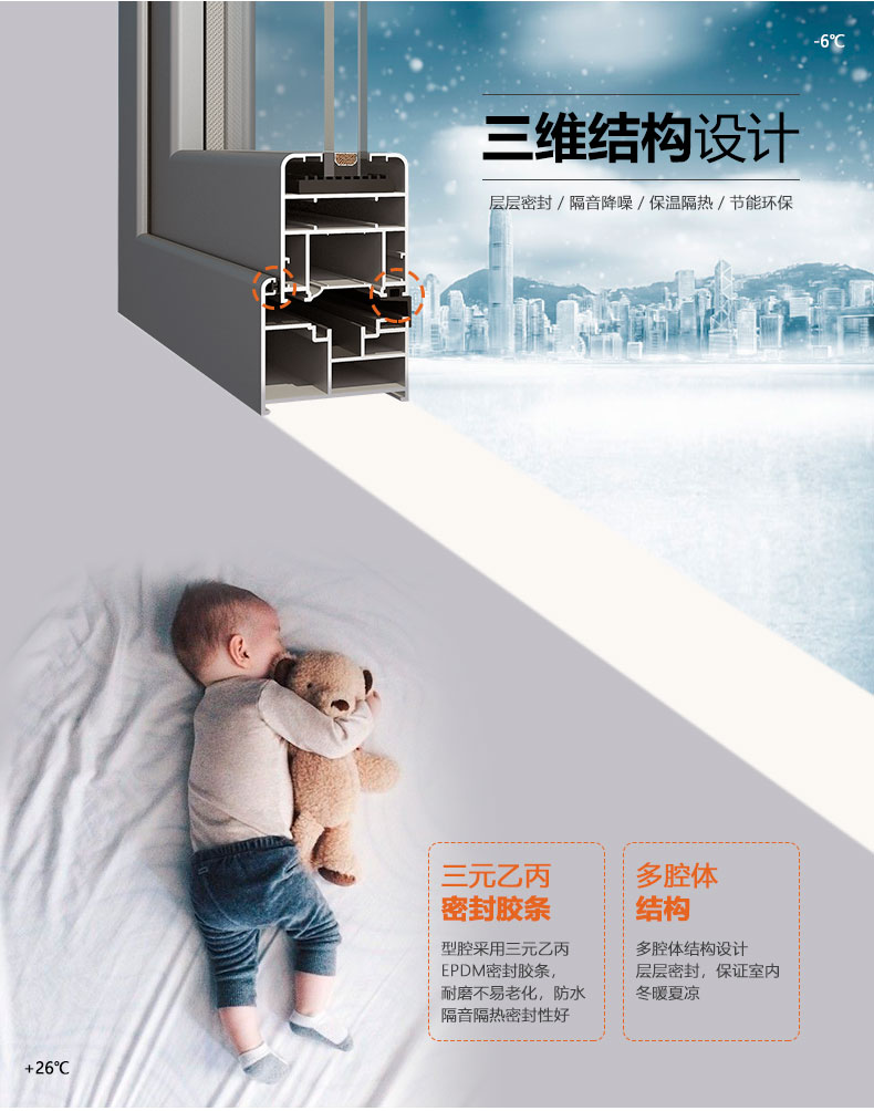 3、多腔體結(jié)構(gòu),三元乙丙密封膠條,層層密封
