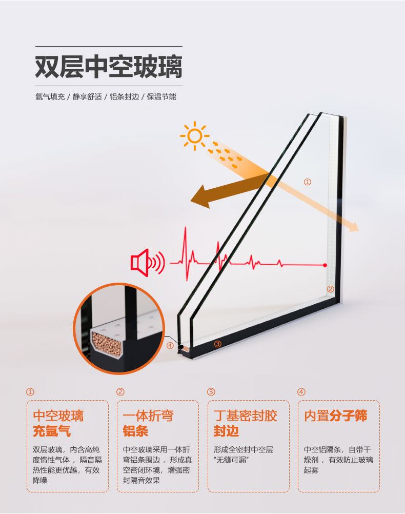 2、汽車級(jí)鋼化玻璃,內(nèi)充氬氣,有效隔音