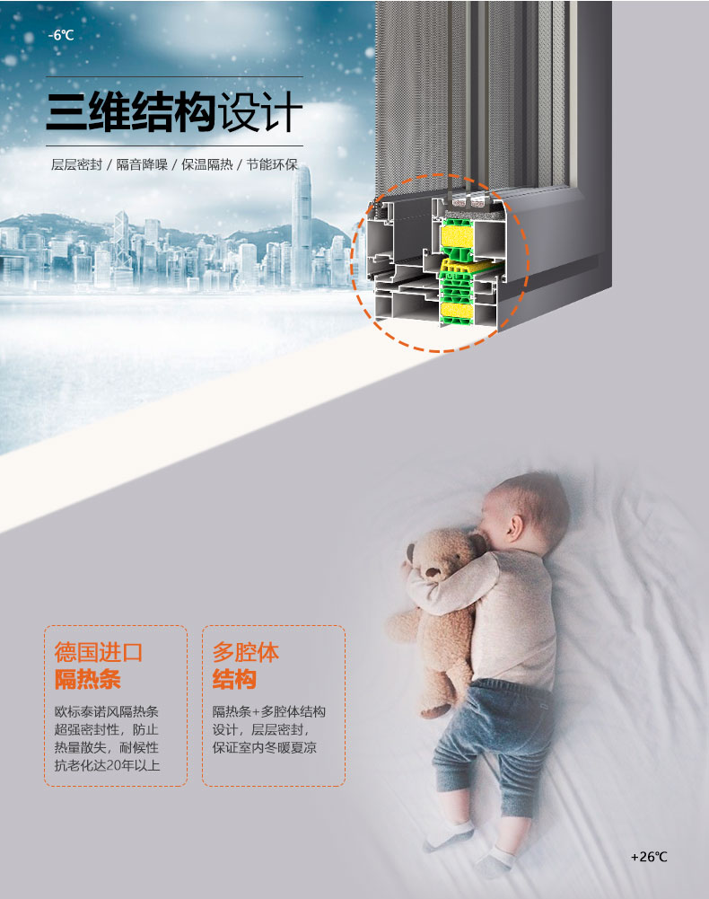 3、多腔體結(jié)構(gòu),三元乙丙密封膠條,層層密封