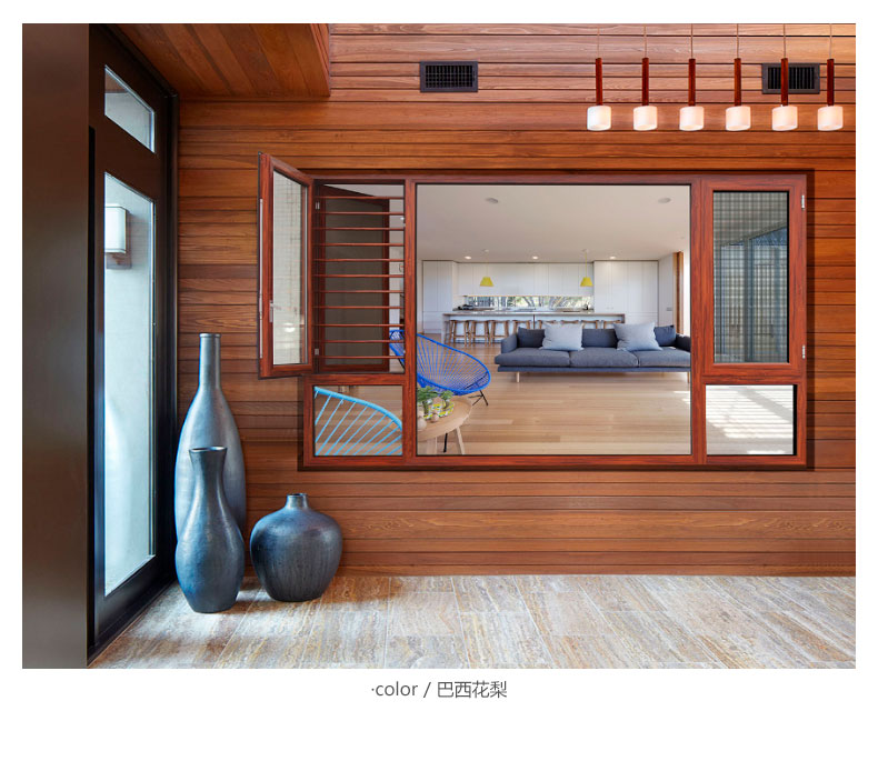 內(nèi)色:巴西花梨、印度紫檀、紅櫻桃、柚木色、海南黃花梨、 白橡木、象牙白、氟碳香檳、氟碳黑銀、砂灰、咖啡黑