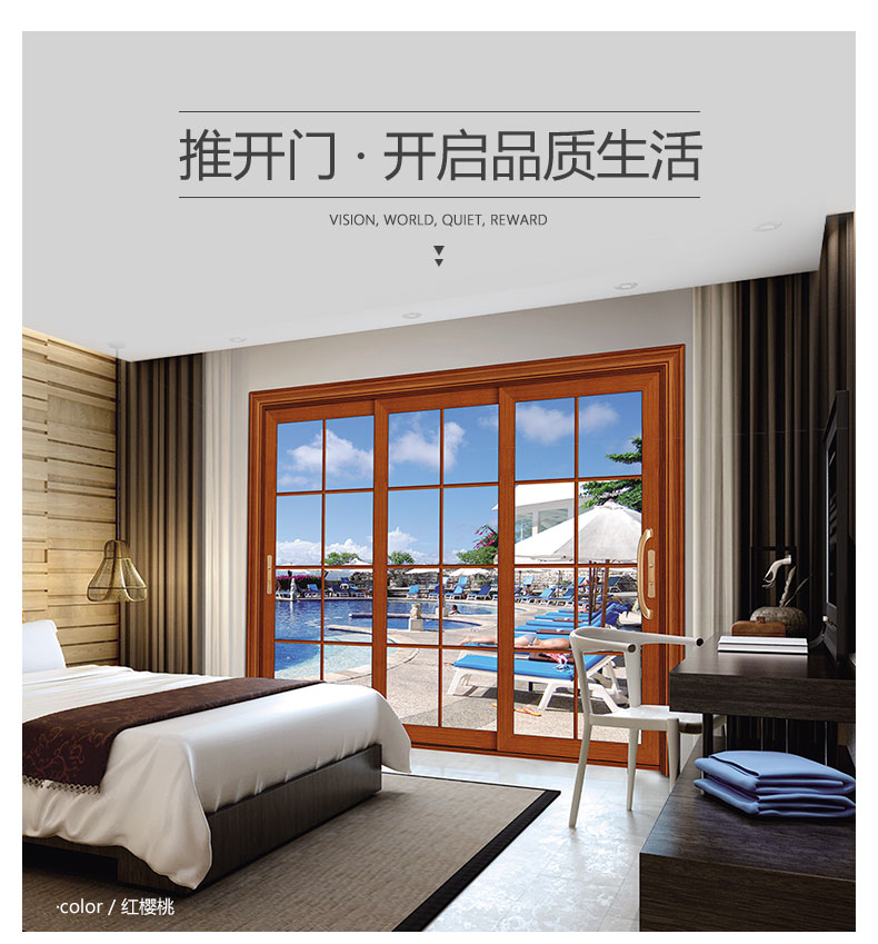 產(chǎn)品代碼:#001系列名稱:推拉門可選顏色:外色:象牙白、氟碳黑銀、氟碳香檳、砂灰、咖啡黑內(nèi)色:巴西花梨、印度紫檀、紅櫻桃、柚木色、海南黃花梨、 白橡木、象牙白、氟碳香檳、氟碳黑銀、砂灰、咖啡黑特點(diǎn):