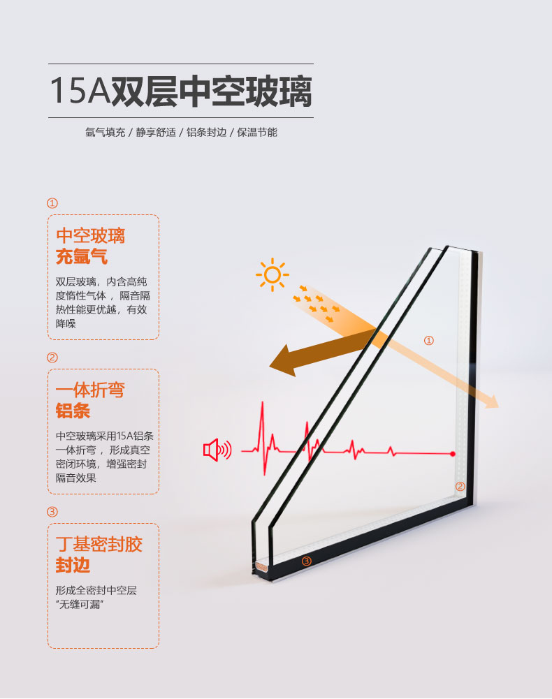 2、汽車級(jí)鋼化玻璃,內(nèi)充氬氣,有效隔音