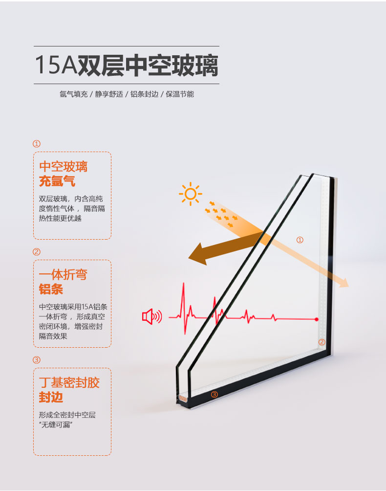 2、汽車級(jí)鋼化玻璃,內(nèi)充氬氣,有效隔音