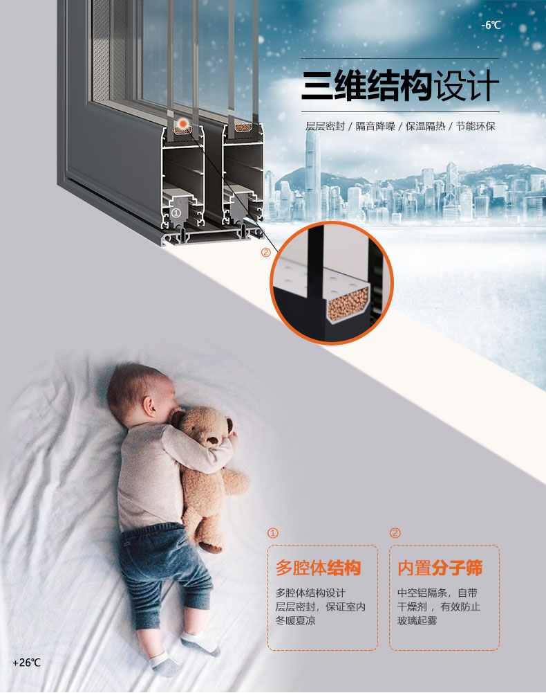 3、多腔體結(jié)構(gòu),三元乙丙密封膠條,層層密封