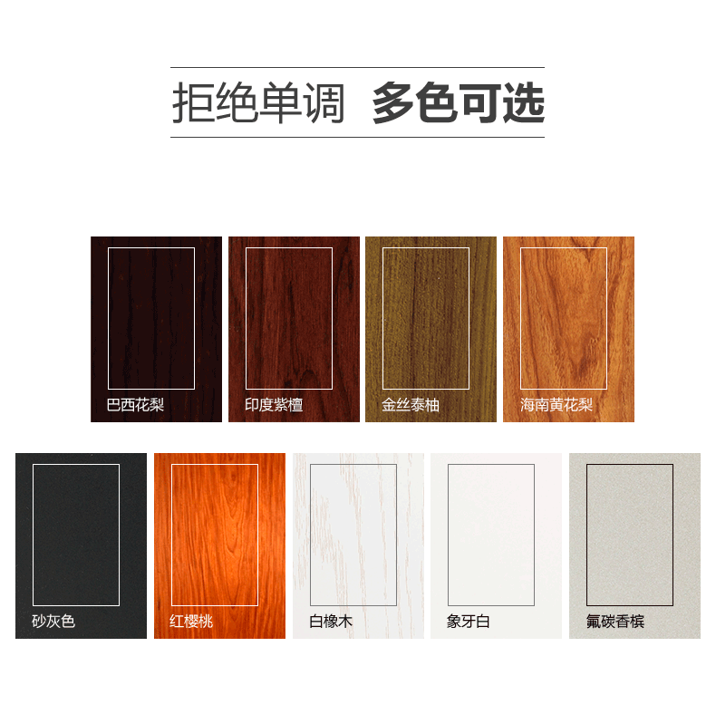 內(nèi)色:巴西花梨、印度紫檀、紅櫻桃、柚木色、海南黃花梨、 白橡木、象牙白、氟碳香檳、氟碳黑銀、砂灰、咖啡黑
