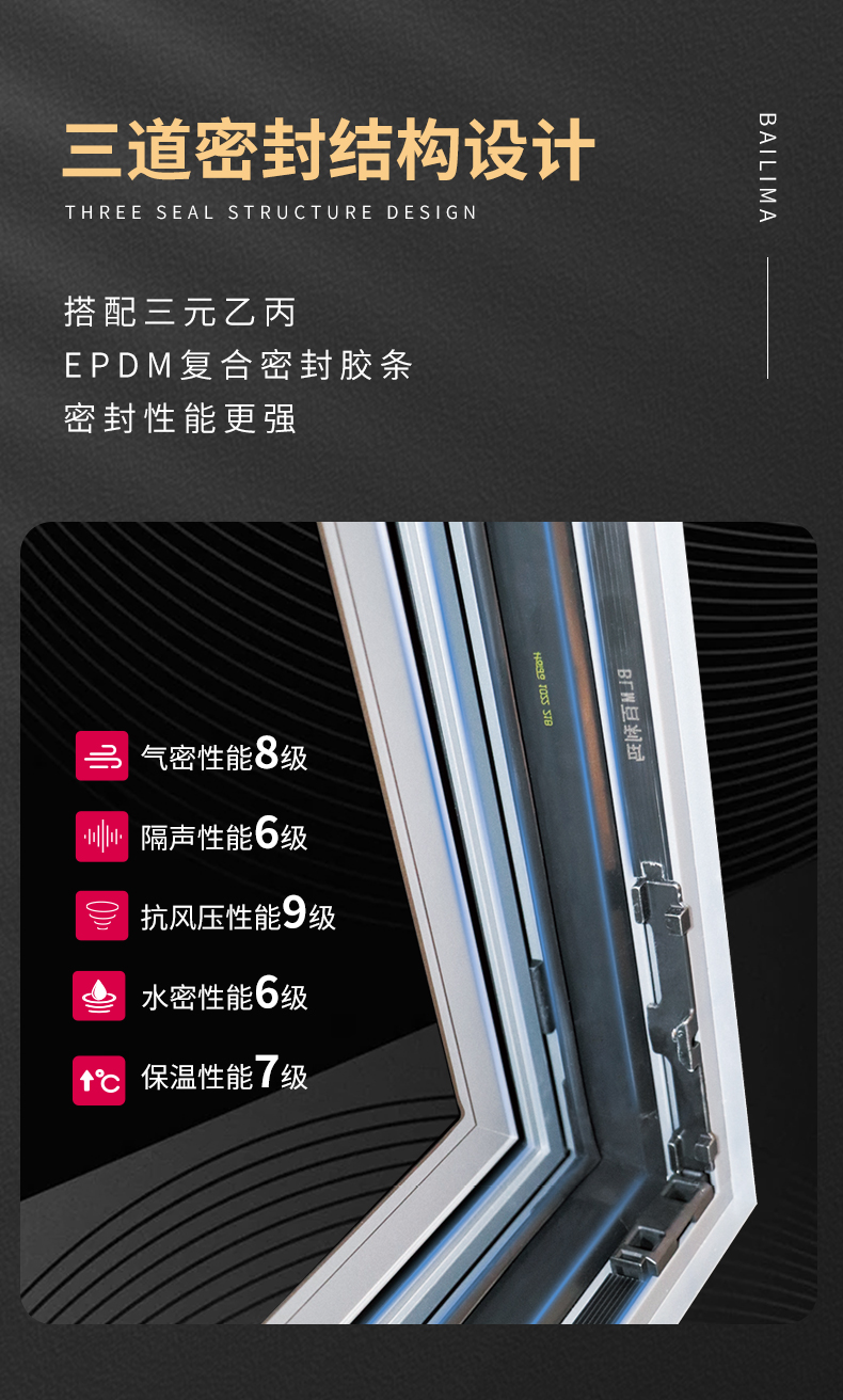 3、多腔體結(jié)構(gòu),三元乙丙密封膠條,層層密封