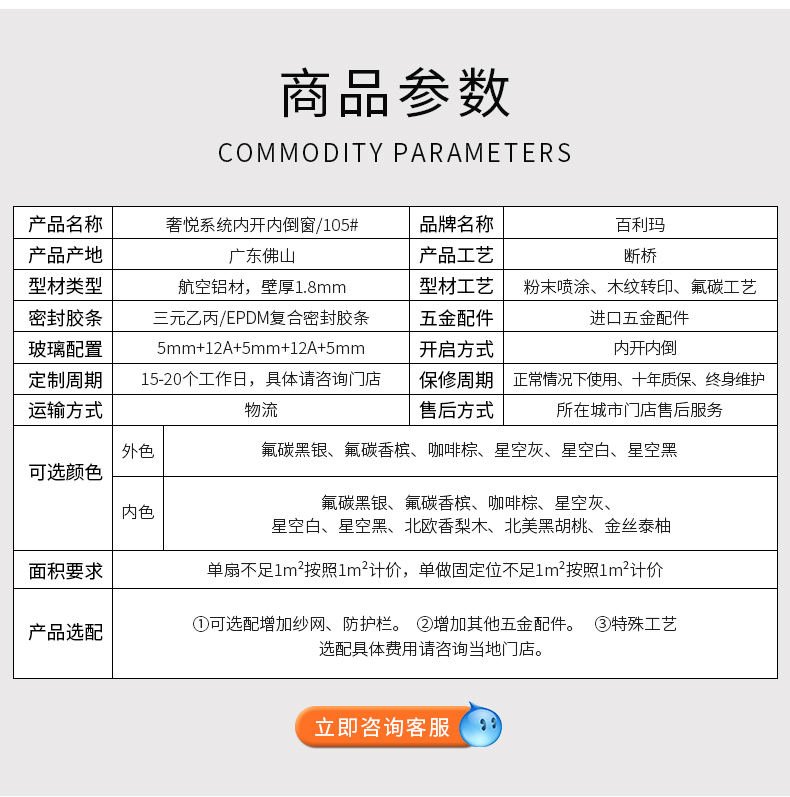 外色:象牙白、氟碳黑銀、氟碳香檳、砂灰、咖啡黑