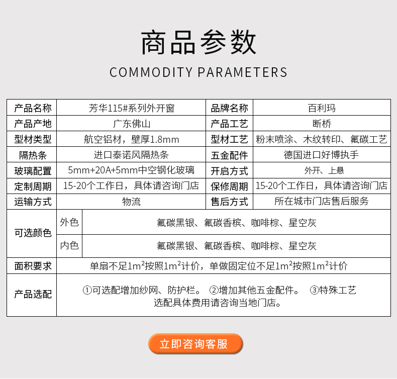 外色:象牙白、氟碳黑銀、氟碳香檳、砂灰、咖啡黑