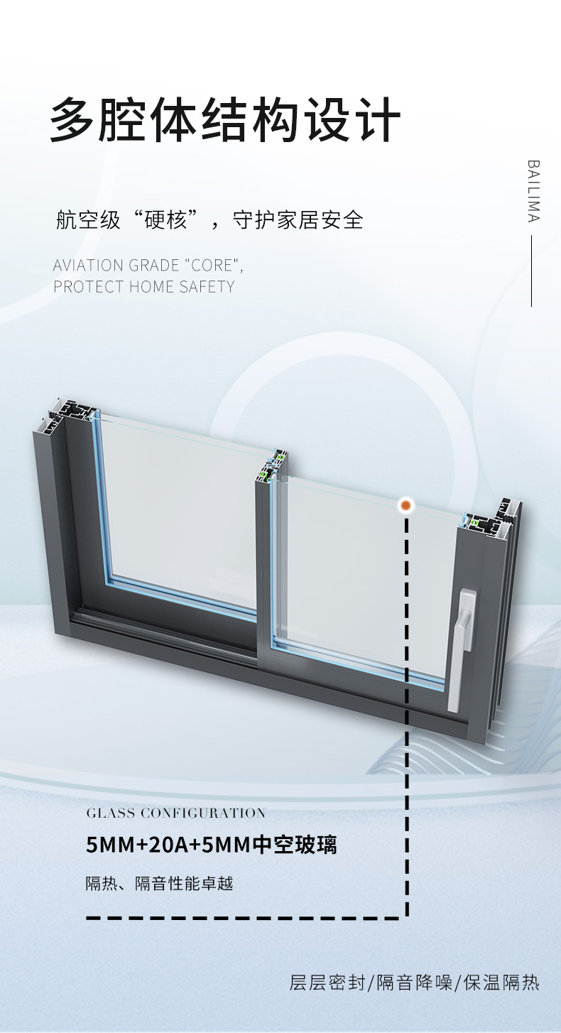 3、多腔體結(jié)構(gòu),三元乙丙密封膠條,層層密封